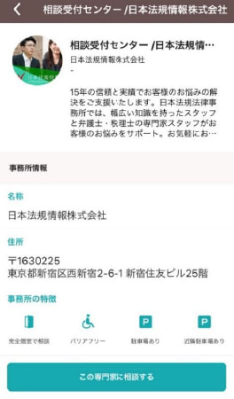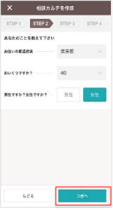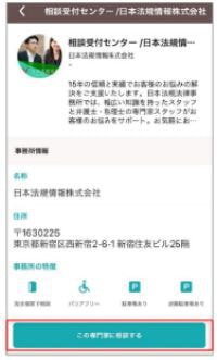 専門家情報を見て問題なければ、「この専門家に相談する」ボタンをタップしてカルテ作成に進みます。